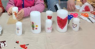 Als Thema hatten wir dieses Mal die Jahreslosung 2024: "Alles was ihr tut, geschehe in Liebe". Der Fokus lag also auf der Liebe und dem gemeinsamen Teilen. Dafür hatten wir viele verschiedene Kreativstationen vorbereitet, u.a. konnten Steine bemalt oder Kerzen mit der Serviettentechnik kunstvoll bedruckt werden. An einer großen Pinnwand wurden Worte gesammelt, die jede und jeder Einzelne mit dem Wort Liebe in Verbindung bringt. Außerdem bestand die Möglichkeit, sich aus vielen Zeitschriften und Stickern eine eigene Collage zum Thema „Das liebe ich“ zu gestalten. In einer Erzählecke war die Geschichte vom „Barmherzigen Samariter“ zu hören.