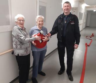 In allen Einzelheiten erklärte uns Herr Zirkler was im Ernstfall zu tun ist, wie das System der Brandschutztüren funktioniert oder wie der Feuerlöscher zu bedienen ist. Die Bewohner durften sogar Schläuche ausrollen. So nah am Geschehen war noch keiner von ihnen dabei und so beschlossen wir, eine Fortsetzung zum Thema „Verhalten im Brandfall“ zu starten.
