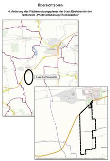 Damit wird die 4. Änderung des Flächennutzungsplanes für den Teilbereich „Photovoltaikfreiflächenanlage Rockensußra“ der Stadt Ebeleben wirksam.