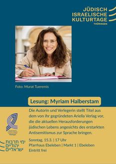 | 17.00 Uhr | Ebeleben, Lesung Myriam Halberstam im Pfarrhaus |