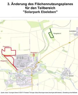Damit wird die 3. Änderung des Flächennutzungsplanes im Bereich des im Parallelverfahren aufgestellten vorhabenbezogenen Bebauungsplanes „Solarpark Ebeleben“ der Stadt Ebeleben wirksam.