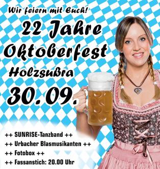 Am 30.09.2023 ab 19 Uhr veranstaltet die Jugendinitiative für Holzsußra e. V. das 22. traditionelle Oktoberfest in der beheizten und urig dekorierten Oktoberfestscheune.