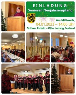 Das neue Jahr hat erst begonnen und schon reihen sich die Veranstaltungen ein, so auch am ersten Mittwoch im Januar, wo Bürgermeister und Stadtverwaltung zum Neujahrsempfang für Senioren geladen hatten. Der öffentlichen Einladung waren ca. 80 Seniorinnen und Senioren gefolgt und sie erlebten ein abwechslungsreiches Programm im Otto - Ludwig - Festsaal des Eisfelder Schlosses. Bürgermeister Sven Gregor begrüßte alle Anwesenden recht herzlich, besonders freute er sich über den Besuch der Kreisseniorenbeauftragten und Vorsitzenden des Kreisseniorenbeirates, Frau Marion Seeber. In einem kurzen Grußwort ging der Bürgermeister auf die Herausforderungen einer immer älter werdenden Gesellschaft ein und berichtet über Projektbeispiele die die Stadt lebenswerter machen. So stehen Themen, wie „Aktiv im Alter, Barrierefreiheit in der Stadt, Zuhause im Alter-soziales Wohnen, Hilfe und Pflege und Letzte-Wege-Begleitung am Lebensende“ im Mittelpunkt der Betrachtungen. Dabei liegt der Focus auf der Stärkung der Lebensqualität im ländlichen Raum, mittels kommunaler Investitionen in Infrastruktur und die öffentliche Daseinsvorsorge. Auch wurde über tagesaktuelle Herausforderungen berichtet. Bürgermeister Gregor machte dabei sehr deutlich, dass gerade in der jetzigen Zeit alle Reserven gebraucht werden. So erfuhren die Senioren die Schwierigkeiten, die bei der Haushaltsaufstellung eine Rolle spielen, die Energiepreise und die Sparziele der Stadt sowie die Investitionen, die in den kommenden Jahren auf den Weg gebracht werden sollen. Mit einem Neujahrsgruß rundet Bürgermeister Sven Gregor sein Grußwort ab und prostet der Festgemeinde zu.