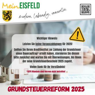 Weitere Informationen zur Grundsteuerreform erhalten Sie auf unserer Homepage www.stadt-eisfeld.de unter "Aktuelle Meldungen".