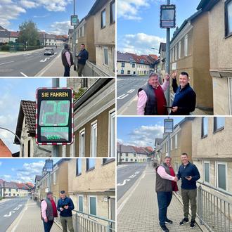 Zur Optimierung der Verkehrssicherheit und Reduzierung der Geschwindigkeiten Richtung Schule und Stadtzentrum, wurde in der Justus-Jonas-Straße ein neues Tempo-Display installiert. Nachdem in Waffenrod-Hinterrod und Harras nach Installation der Displays die Geschwindigkeiten im Schnitt deutlich reduziert werden konnten, hoffen wir in Eisfeld auch auf eine Verbesserung. Anfang Oktober hat Gemeindekümmerer Christoph Bauer Bürgermeister Sven Gregor die wesentlichen Funktionen erläutert und das Display digital konfiguriert. Passt die Geschwindigkeit, bedankt sich herzlich ein grüner Smiley. Bei über 30km/h meldet sich ein roter Smiley mit einem entsprechenden Hinweis „Tempo runter - Fußgänger“.