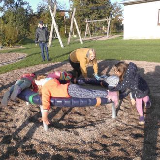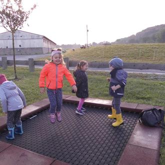 Treffpunkt war diesmal der Bahnhof. Alle waren pünktlich. Jeder nahm seine Oma oder seinen Opa an die Hand und dann kam auch schon der Zug! Die Reise konnte losgehen. Aufregend und spannend ist so eine Zugfahrt. In Harras angekommen ging es zu Fuß weiter. Zwischendurch lösten wir gemeinsam ein paar Herbsträtsel. Dabei konnten die Kinder stolz zeigen, was sie schon alles gelernt haben. Am Spielplatz angekommen wärmten wir uns mit einem Sportspiel auf und alle machten begeistert mit. Dann gab es Frühstück aus dem Rucksack und unseren selbstgebackenen Kuchen. Nach dem Frühstück gingen alle auf große Schatzsuche. Natürlich fand auch jedes Kind seine Schatzkiste. Danach wurde endlich der Spielplatz erobert.