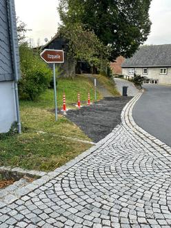 Unser weiterer Dank geht an die Mitarbeiter des Bauhofstandortes Sachsenbrunn für die Befestigung der Fläche zwischen dem Gemeindehaus und dem Kirchsteig. Durch die Arbeiten konnte diese Fläche ansehnlich hergerichtet werden und wurde mit 3 Pollern zur Grünfläche hin abgegrenzt.