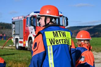 Im Anschluss erfolgte Freizeit und Spiel, bevor die nächste Ausbildung anstand, dessen Thema bewusst die Wald- und Vegetationsbrandbekämpfung war. Denn gegen 14:30 Uhr wurde ein ausgedehnter Flächenbrand am alten Fleischbaum gemeldet. Bei diesem Meldebild wurde parallel Unterstützung aus den befreundeten Feuerwehren Schalkau und Rottenbach angefordert, um gemeinsam in einer Riegelstellung den angenommenen Brand unter Kontrolle zu bekommen. Um genügend Wasser an der Einsatzstelle zu haben, fuhr das Eisfelder Tanklöschfahrzeug im Pendel an einen Hydranten in Sachsenbrunn und lieferte entsprechenden Wassernachschub. Vor Ort wurde durch Jugendwart Thomas Ebert und Cornelia Lorz Kaffee und Kuchen bereitgestellt.