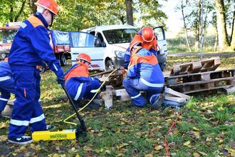 Wichtig bei den Einsätzen war natürlich für den Feuerwehrnachwuchs, das in vielen Ausbildungsstunden der vergangenen Monate Gelernt anzuwenden. Wie wird eine Wegestrecke für die Löschwasserversorgung aufgebaut? Was muss ich bei der Anwendung der Ersten Hilfe oder beim Funken beachten? Wie wird ein Hebekissen angesetzt bzw. ein Hebesatz gehandhabt? Das waren einige der zu lösenden Aufgaben an diesem Sonnabend. Daneben gab es Ruhe- und Freizeitphasen oder auch einen Bereitschaftsdienst, so wie es bei der Berufsfeuerwehr der Fall ist. Zu den Aufgaben einer Feuerwehrfrau und eines Feuerwehrmanns gehört es selbstverständlich auch, Aufräumungsarbeiten und Reinigungsarbeiten durchzuführen.