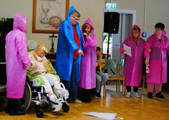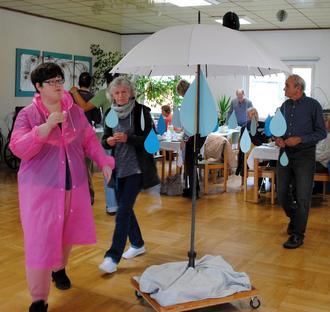 In einem großartigen Programm griffen die Beschäftigten der Tagesförderstätte die Gedanken des Pfarrers auf und zeigten, dass nicht nur tatsächliche Schirme oder Schirme im übertragenen Sinn schützen können, sondern dass es außerdem die Gemeinschaft ist, der Zusammenhalt, der sie alle stark sein lässt. Immer wieder lassen sich TF-Leiterin Franziska Dorscht und ihre Mitarbeiterinnen Neues einfallen, um die motorischen und kognitiven Talente weiterzuentwickeln und auszubauen.