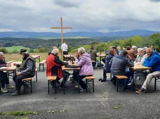 Es ist der 27.09.2025, ein Samstagnachmittag, auf dem Langen Berg am Wander- und Gedächtniskreuz. Zwar hat sich die Sonne versteckt, doch der Regen blieb aus - ein guter Tag, um 35 Jahre Grenzdurchbruch zu feiern und die Geschichte dieser Zeit lebendig zu halten.