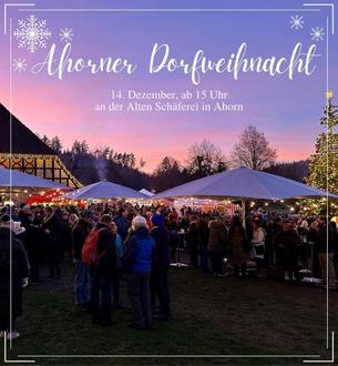 die Gemeinde Ahorn lädt Sie herzlich zur Ahorner Dorfweihnacht am dritten Advent, Sonntag, den 14. Dezember 2025, ein. Von 15 bis 19 Uhr verwandelt sich das historische Gelände rund um die Alte Schäferei in ein festlich geschmücktes Weihnachtsdorf.