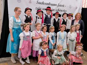 So schallte es am 12. Oktober 2025 aus dem Festzelt in Sachsenbrunn. Die Mädchen und Jungen der Katzengruppe, Vorschulkinder des Kindergartens „Fritz Weineck“, gestalteten das Kirmesprogramm in diesem Jahr mit. Die Mädchen hatten sich zur Feier des Tages hübsch mit Dirndl und Blumen im Haar herausgeputzt, die Jungen standen mit eleganten Wams und Hut mit rotem Band zum Tanzen bereit. Bereits Ende August begannen die Proben zum diesjährigen Knirpsenkirmesprogramm. Vor den Augen der ganzen Familie tanzten die Kleinsten und die etwas älteren Kinder durch den Nachmittag zum Walzer, dem Holzfäller, dem Beerensammler und weiteren Stücken. Natürlich wurden auch die einstudierten Sprüche vorgetragen. Nach der Aufführung konnten die „Knirpse“ etwas geschafft und mächtig stolz das weitere Programm am Rande sitzend verfolgen. Was für eine schöne Aufregung für eine so gelungene Aufführung!