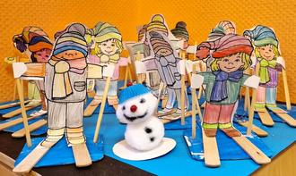 Wir malen mit Salzwasser Glitzerbilder und bastelten optische Täuschungen in Form von Kreiseln. Auch ein Wintersportfest in Kälte und Frost haben wir mit viel Spaß veranstaltet. Es gab Medaillen - aber keinen Schnee.