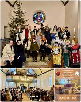 Das Krippenspiel in der Christuskirche Waffenrod-Hinterrod hat eine lange und lebendige Tradition. Auch an Heiligabend 2025 wurde diese eindrucksvoll fortgeführt. Viele Familien brachten sich mit großem Engagement ein, und insgesamt 23 Kinder zeigten ihr schauspielerisches und musikalisches Talent vor einer bis auf den letzten Platz gefüllten Kirche. Pfarrer Johannes Dieter führte durch den stimmungsvollen Gottesdienst. Bürgermeister Christoph Bauer blickte auf die erfreulichen baulichen Entwicklungen in der Christuskirche zurück und verband dies mit einem Dank an die Kirchgemeinde sowie an alle ehrenamtlichen Helfer.
