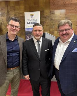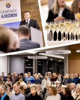 Bürgermeister Christoph Bauer, Landrat Sven Gregor, Ehrenbürgermeister Gerd Braun und Vertreter der Stadt Eisfeld nahmen am Neujahrsempfang der Partnergemeinde Ahorn am 23. Januar 2026 in der Kulturhalle Witzmannsberg teil. Die Veranstaltung stand unter dem Motto „Voneinander lernen in Ahorn - gemeinsam stark für morgen“ und setzte wertvolle Impulse zum Thema Bildung und kommunale Zusammenarbeit.