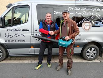 So bunt und farbenfroh wie der Herbst selbst, so herausfordernd ist es, die fallenden Blätter zu beseitigen. Dank der großzügigen Spende eines Laubbläsers durch das Taxiunternehmen Heß wird uns die Arbeit in dieser Jahreszeit nun erheblich erleichtert. Die Freude über die Unterstützung ist dem Mitarbeiter Jens Sideritsch von der Wefa in Eisfeld bei der Übergabe durch Jörg Heß wirklich anzusehen. Wir sagen von ganzem herzen DANKE!!!