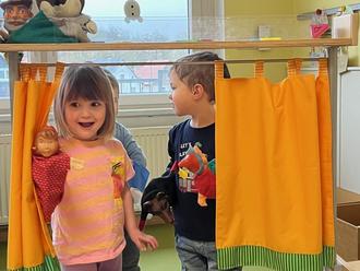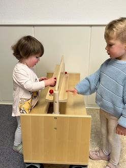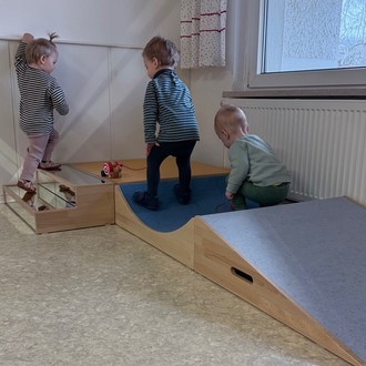 Spielen ist die Haupttätigkeit im Vorschulalter. Uns Erzieherinnen ist es wichtig, die Kinder beim Spielen zu beobachten, mit ihnen zu spielen und ihre Spielinhalte zu bereichern. Beim Spielen leben die Kinder ihre Fantasie, Kreativität und ihren Forscherdrang aus. Um so mehr freuten wir uns alle über ein neues Theater, eine Kugelbahn und ein Muldenpodest.