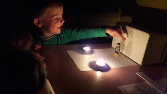 An einem Tag setzten sich die Kinder mit dem Thema HELL und DUNKEL auseinander - schon im Morgenkreis konnten verschiedene Taschenlampen ausprobiert werden, das Frühstück wurde im Dunkeln gemacht und die Kinder konnten in verschiedenen Experimenten erleben was eigentlich alles mit Licht und Schatten möglich ist. Besonders spannend fanden die Kinder, dass man Schatten verdoppeln, wegzaubern oder auch größer und kleiner machen kann.