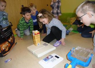 Die Bambi-, Bären-, Käfer- und Igelgruppe bereiteten jeweils ein Experiment vor und innerhalb dieser Woche wurden die Experimente von Gruppe zu Gruppe weitergegeben, so konnten sie durch alle Kinder ausprobiert werden.