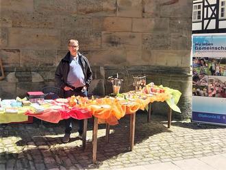 Mit Flyern und einem Roll-Up sowie in vielen angenehmen Gesprächen konnten sich die Besucher des Standes über die Arbeit der Beschäftigten in der Wefa informieren. Doch nicht nur nützliches Wissen wurde an den Mann oder die Frau gebracht. Viele schöne Dinge aus Eigenproduktion boten Verena Müller und Michael Skalda feil, und so wechselte Getöpfertes aus dem Berufsbildungsbereich (BBB) und der Tagesförderstätte für mehrfach-schwerstbehinderte Menschen (TF) der Wefa Eisfeld sowie aus dem Arbeitsbereich 1 der Wefa Hildburghausen den Besitzer, ebenso Honig von den fleißigen Bienchen vom Roten Hügel Hildburghausen sowie selbst gegossene Kerzen aus beiden Werkstätten. Über die Kirchgemeinde wurden Bücher und Hefte mit christlichen Texten weitergegeben. Alle Beteiligten freuten sich über die vielen interessierten Besucher. Man merkte einmal mehr: „Kirchgemeinde und Wefa gehören halt zu den Eisfelder Höhepunkten dazu“, so Verena Müller, die sich im Namen der Wefa-Beschäftigten und ihrer Kollegen für den regen Zulauf und das große Interesse bedankte.