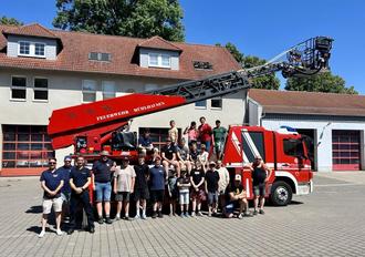 Am zweiten Tag stand standesgemäß ein Besuch bei einer Berufsfeuerwehr an. Unser Weg führte uns dieses Mal zur Berufsfeuerwehr Mühlhausen. Hier wurden wir durch die Kameraden freundlich empfangen, in zwei Gruppen aufgeteilt und herumgeführt. HLF, TLF, und Rüstwagen, neben Fahrzeugen, die wir auch aus Eisfeld kennen, konnten wir u.a. auch Fahrzeuge wie Drehleiter, Gw- Mess und ein Sonderfahrzeug für die Tierrettung bestaunen. Auch die Feuerwache nahmen wir genauer unter die Lupe. Nachdem das obligatorische Gruppenfoto geschossen wurde, bedankten wir uns bei Ronny und seinen Kameraden mit einem kleinen Gastgeschenk und verbrachten den Rest des sehr heißen Tages im Freibad in Heilbad Heiligenstadt.