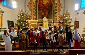 wir laden Euch und Eure Familien herzlich ein, die Geburt Jesu am 24.12.2023 um 16 Uhr gemeinsam mit uns in der Pfarrkirche St. Martin in Witterda zu feiern.