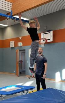 Zum Abschluss einer aufregenden Zirkuswoche gab es auch noch ein tolles Geschenk für die gesamte Schule. Das lang ersehnte transportable Trampolin für unsere Turnhalle wurde geliefert.