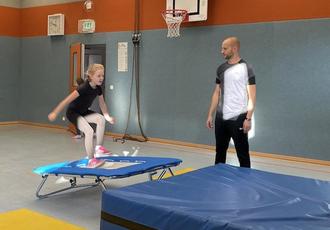 Anschließend durften alle Viertklässler die Sprungkraft des Trampolins testen. Diese waren total begeistert von der neuen Errungenschaft und freuen sich auf die kommenden Sportstunden.