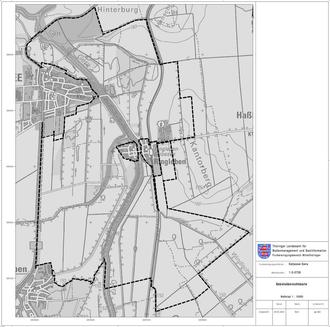 Die Anlage 1 bildet einen Bestandteil dieses Beschlusses. Das Flurbereinigungsgebiet hat eine Größe von 1.137 ha. Das Verfahren wird unter der Leitung des Thüringer Landesamtes für Bodenmanagement und Geoinformation, Flurbereinigungsbereich Mittelthüringen, Hans-C.-Wirz-Straße 2, 99867 Gotha durchgeführt.