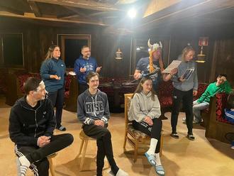 Nach Skiabgabe und Abendessen werteten die Lehrer Frau Müller und Herr Bindel sowie die begleitenden Betreuer den Skikurs aus. Sie fanden nur lobende Worte über den Lernfortschritt, die Disziplin der Gruppen, den Zusammenhalt … Bei der Skitaufe durch den extra engagierten SKIGOTT wurde jeder Skischüler mit einem sich in der Woche verdienten Ski-Namen benannt. Zum Abschluss wurde auch der SKIGOTT eingefangen, eingeseift, rasiert und neu getauft!