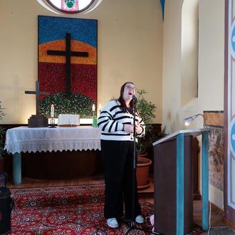 Seit einiger Zeit organisiert der evangelische Gemeindekirchenrat gemeinsame „Cafe-Stunden“ für gute Gespräche in unserer Kapelle. Bei selbstgebackenen Kuchen mit Kaffee kommen alle Besucher schnell ins Gespräch. Die Nachwuchssängerin Mariella füllte die Stunden mit bekannten Liedern, bei denen kräftig geklatscht und sogar mitgesungen wurde.