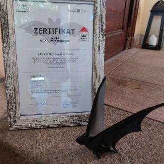 Des Weiteren wurde uns die Plakette „Fledermaus Freundlich“ mit einem Zertifikat verliehen.