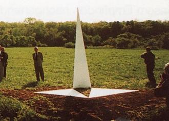 Leider ist dieses Kunstwerk heute nicht mehr zu sehen und der ursprüngliche Standplatz ist inzwischen mit Gebüsch zugewachsen. Nachdem das aufrecht stehende Dreieck mehrfach umgerissen worden war, wurde es bereits Mitte der 1990er Jahre von der Gemeindeverwaltung sichergestellt und verwahrt. Die verbliebenen liegenden Dreiecke „verschwanden“ auf unerklärliche Weise einige Monate später ebenfalls. Wie sich inzwischen herausstellte, sollen sie sich in Witterda befinden. Die Gemeindeverwaltung bemüht sich seit mehr als einem Jahr, bisher leider erfolglos, alle Teile der Plastik wieder zusammenzubringen. Vielleicht gelingt es doch noch, das Kunstwerk an anderer Stelle neu aufzurichten.