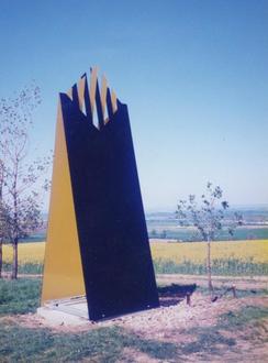 Die 3,60 m hohe Verzahnung aus lackierten Stahlplatten stand 29 Jahre an weithin sichtbarer Stelle oberhalb der alten Linde auf der Anhöhe zwischen Witterda und Friedrichsdorf. Die gegeneinander gelehnten Flächen verzahnten sich: das Gelbe und das Schwarze, Licht und Finsternis, Tag und Nacht. Wer sich darauf einließ, konnte Vieles für sich daraus lesen, sich aber beim Durchschreiten auch nur an den wunderbaren, farbigen Lichtspiegelungen im Inneren erfreuen.
