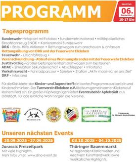 In diesem Jahr wird der Tag der Sicherheit, initiiert von Möbel Kraft, gemeinsam mit den Elxlebener Vereinen auch als Kinderfest ausgerichtet, welches somit in diesem Jahr am 6. September und nicht wie sonst am 20. September stattfindet.