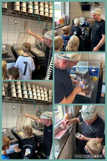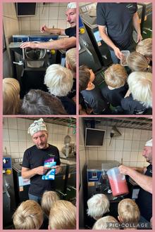 Uns wurde der Vorgang sowie alle Schritte zur Eisherstellung genauestens erklärt, wir haben uns die Maschinen angeschaut, durften natürlich fleißig mitwirken und alle Kinder waren aufmerksam und begeistert bei der Herstellung und Umsetzung dabei.