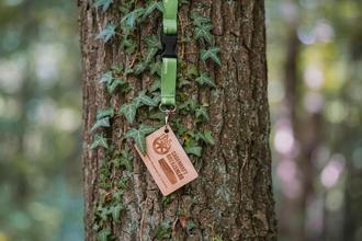 Die Wandertagsplakette, gefertigt aus heimischen Buchenholz
