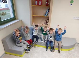 Natürlich gab es anschließend das erste Probesitzen. Für die Bücherecke, im Gruppenraum der Roten Zwerge, ist das Sofa ein echter Gewinn.
