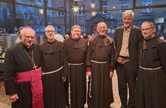 Brüder des Franziskanerklosters Berlin mit dem Bischof Heiner Koch