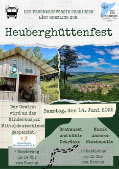 Endlich ist es wieder so weit: Am 14. Juni steigt unser beliebtes Heuberghüttenfest! Diesmal kombinieren wir das Ganze mit unserer Spendengrillaktion - der komplette Erlös aus Bratwurst und Getränken geht an das Kinderhospiz Mitteldeutschland in Tambach-Dietharz.