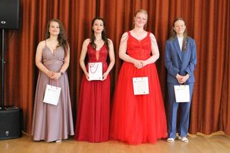 Sowohl in der Rede der Eltern, gehalten von Frau Kalbhenn, als auch in der der Schülerschaft wurde wohlwollend von Justus Görke auf die vergangene Schulzeit zurückgeblickt. Frau Dr. Schotte-Grebenstein, die als neue Schulleiterin erstmalig die Zeugnisausgabe vornahm, durfte sieben Mal die Traumnote 1,0 ausgeben und ganze 18 Schülerinnen und Schüler für ein e-fellows.net-Stipendium anmelden. Der Durchschnitt dieses Jahrgangs der Superlative liegt bei 2,03.
