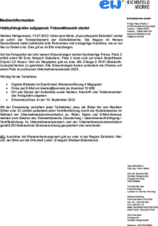 Mit der Einsendung versichert jeder Teilnehmer, dass die Bilder frei von Rechten Dritter sind. Er stimmt außerdem einer Veröffentlichung durch die Eichsfeldwerke im Rahmen der Unternehmenskommunikation zu. Bilder, Name und E-Mail-Adresse werden zum Zwecke des Fotowettbewerbs (Auswertung / Gewinnbenachrichtigung / Veröffentlichung im Unternehmenskalender) und der Unternehmenskommunikation gemäß EU-Datenschutz-Grundverordnung gespeichert und verarbeitet.