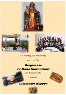 Durch Ihren großen Zuspruch ist es mittlerweile zur Tradition geworden, am Sonntag nach Maria Himmelfahrt ein Messe, mit Kräuterweihe, auf den Dieteröder Klippen zu feiern.