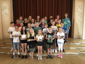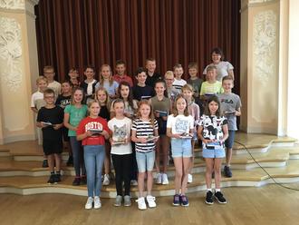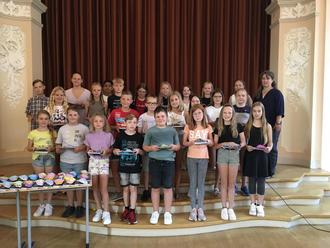 Bei der Frage, wer denn vor Aufregung nicht schlafen konnte, meldeten sich viele unserer neuen Schülerinnen und Schüler. Im Beisein der neuen Klassenlehrerinnen Frau Löffler, Frau Spitzenberg und Frau Hesse sangen jedoch alle 5.-Klässler zur feierlichen Aufnahme in der Aula unseres Gymnasiums fleißig mit.