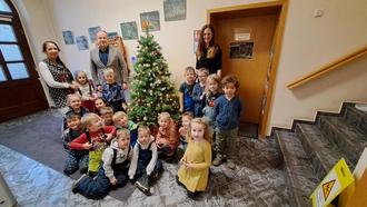 Mittlerweile schon einer schönen Tradition folgend besuchen die Kinder aus dem Kindergarten „Brunnenspatzen“ in der Voweihnachtszeit den Bürgermeister Ralf Holland-Nell und singen Weihnachtslieder. 2023 kamen zum plauschen und singen die Regenbogengruppe.