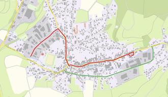 Zur Absicherung des diesjährigen Karnevalsumzugs am Sonntag, 15.02.2026 wird die Umzugsroute ab 12:30 Uhr abgesperrt (rote Linie). Der Straßenverkehr wird zu diesem Zeitpunkt über die Karlstraße umgeleitet (grüne Linie).