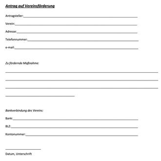 Die Vereinsförderung muss jedes Jahr neu beantragt werden. Die Förderung kann Ihnen in Form von finanziellen Mitteln (können nur im Rahmen der vorhanden Haushaltsmittel ausgereicht werden), Bauhofleistungen, o.ä. zukommen.