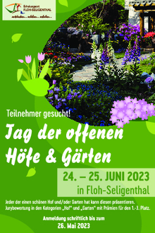 Sie haben mit viel Liebe Ihren Garten oder Ihren Hof in kleines Paradies verwandelt? Wir möchten Ihnen die Möglichkeit geben Ihren Hof und/oder Garten zu präsentieren und sich mit anderen Interessierten auszutauschen. Egal ob Blumenparadies, ländlicher Bauerngarten, historischer Hof, Steingarten, Pflanzgarten, o.Ä. jeder bekommt die Möglichkeit am „Tag der offenen Höfe & Gärten“ teilzunehmen und mit etwas Glück einen der drei Prämien pro Kategorie zu gewinnen.