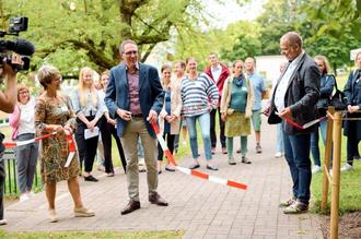 Mit uns freuten sich am 21.September viele Gäste der Abschlussveranstaltung „10 Grüne Schulhöfe für Thüringen“, die wir gemeinsam mit der DUH in unserer Schule ausrichteten. Sogar der Umweltminister, Bernhard Stengele war dabei, weihte das Grüne Klassenzimmer offiziell ein und gratulierte uns zum Erreichten.